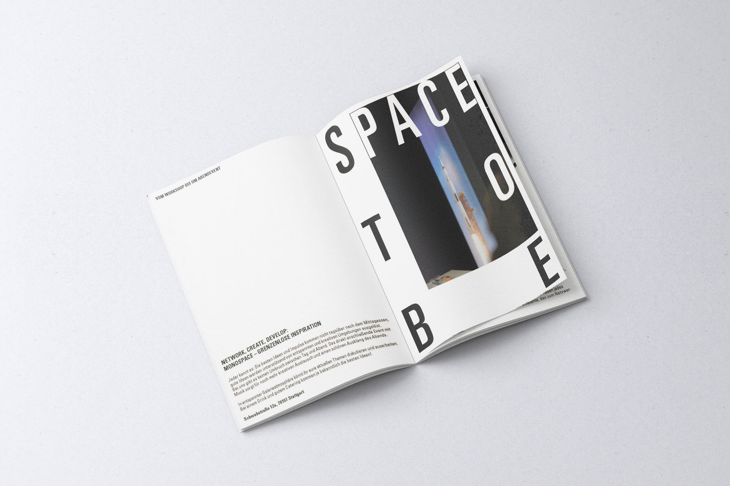 The Monospace magazine offers a first glimpse into our unique concept. With a contemporary and eye-catching layout design, it showcases our space, highlighting both the productive office atmosphere by day and the vibrant event flair by night. Inside, you'll find detailed information about our room features, available packages, and pricing.